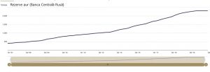 Rusia a întreprins măsuri pentru a avea o rezerva care să ii asigure o protecție atât în fața sancțiunilor, a sistemului financiar dar și a volatilității impuse de prețul petrolului. Instituția principala care coordonează acest proces este Banca Centrala Rusă. Începând cu 2007 rezervele de aur sunt în creștere (400 de tone în 2007 ajungând la 2298 de tone în 2020) (fig1) evaluat la cursul actual are o valoare de 144 miliarde$. Aurul poate fi văzut ca o metoda de protecție împotriva inflației și a scăderii prețului petrolului pentru ca se corelează invers, prețul aurului tinde sa crească in momente de inflație sau de scădere a prețului petrolului dar reprezintă și o metodă de a reduce din ponderea dolarului în coșul de economii a băncii centrale Ruse.