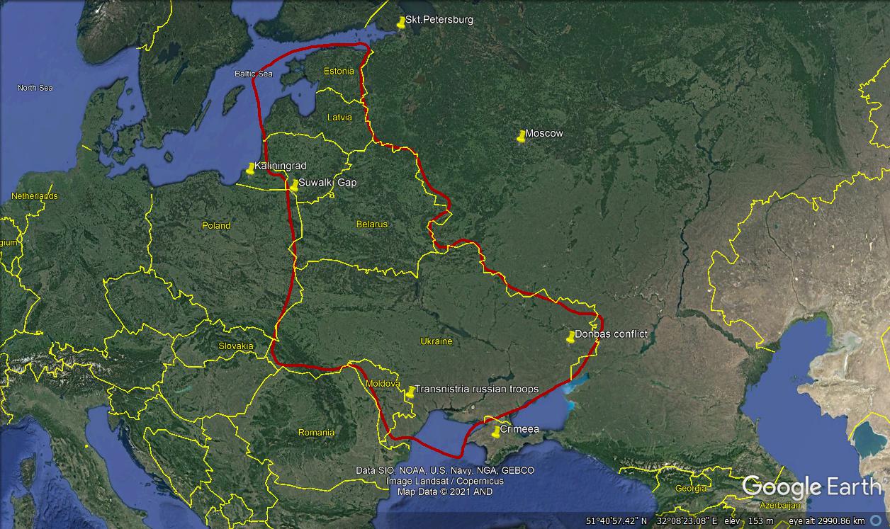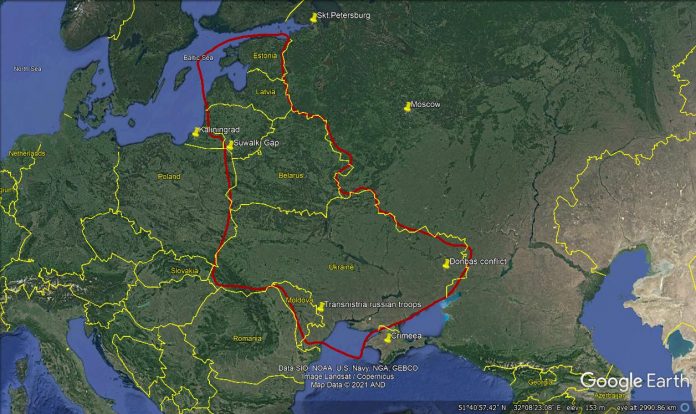 Cele 3 țări baltice sunt legate de Polonia, teritoriul NATO, prin asa numita Fâșie Suwalki/Suwalki Gap o deschidere lată de 70km de graniță dintre Polonia si Lituania prin care balticele sunt conectate pe teren cu Polonia. Granița NATO din îngusta Fâșie Suwalki (după numele localității poloneze din vecinătatea graniței) este presată între regiunea rusească Kaliningrad la nord, fost Konigsberg oraș întemeiat de cavalerii teutoni si parte din liga Hanseatică încă din 1340 cedat Uniunii Sovietice in 1945, iar la sud de Bielorusia o țară aflată sub o puternică influență rusească, cu 3 baze militare rusesti (un radar de avertizare timpurie, o baza de comunicații navale și un aeroport militar). În cazul izbucnirii unui conflict militar de amploare în zona acesta de contact între NATO si Rusia, fâșia Suwalki nu va putea să reziste unui atack simultan din nord si sud. Tările baltice vor fi cel mai probabil cucerite de Rusia în timp de cateva zile. Aceasta poate fi cea mai mare amenințare pentru țările baltice in viitor.