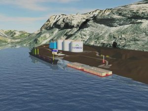 Simulation of the port and facilities for the initial ore processing of the Tanbreez project in South Greenland.